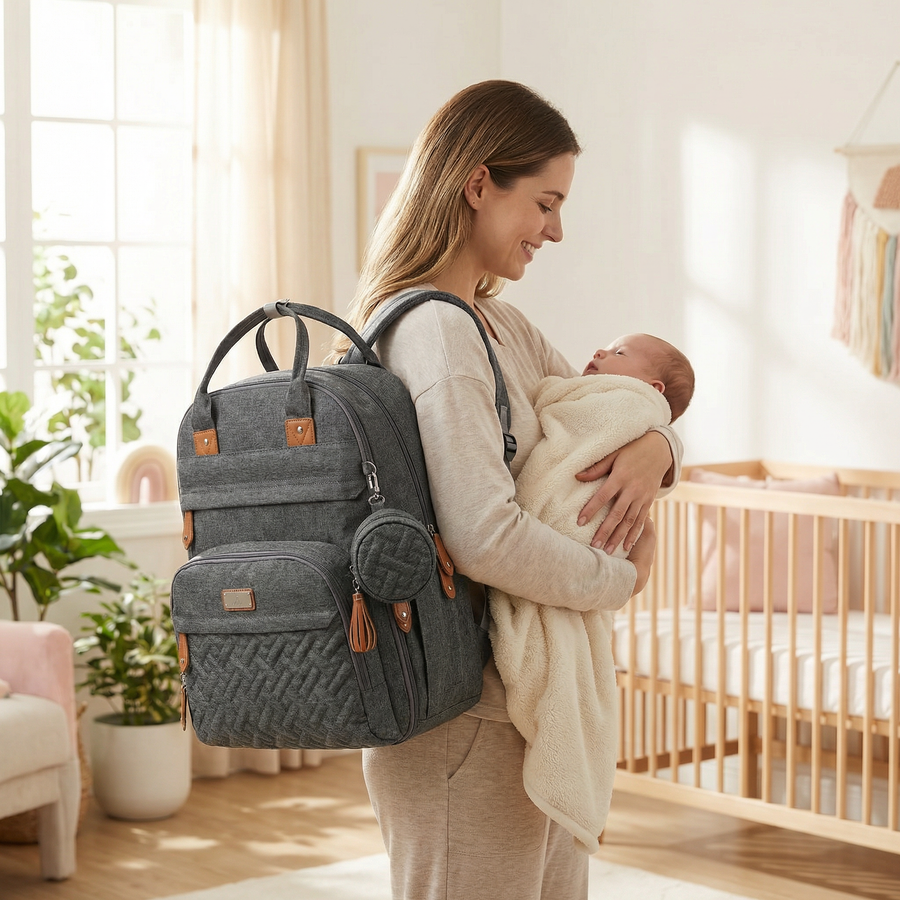 A spacious multi-function baby bag backpack in pink with plenty of organised compartments for all your essentials. Comfortable to carry and easy to clean, it’s perfect for daily outings and travel with your little one.